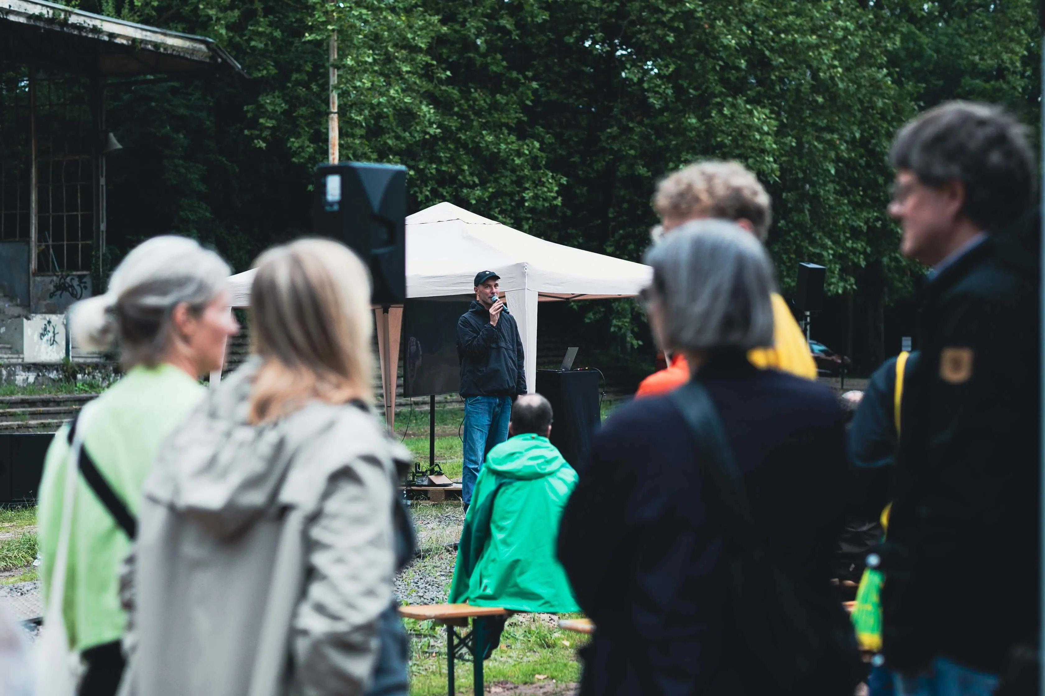 Nachdem wir die lange geplante und mit Spannung erwartete Veranstaltung an der Alten Stadiontribüne wegen des schlechten Wetters vom 6. auf den 27. Mai verlegen mussten, richteten sich auch am Wochenende vor dem zweiten Anlauf alle Blicke auf die verschiedensten Wetterdienste und -vorhersagen. Eines schien sicher, auch der neue Termin würde keine laue Sommernacht werden, es sollte stattdessen mit Sicherheit regnen, einzig in welcher Menge, das schwankte noch von App zu App.